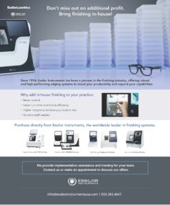 Advertisements and Promotions Invitation to Attend and Free Pass Ask the Experts Sessions Equipment Showcase Cellview WRI-1 Retinal Imager Exam Lane for a Successful Practice and Innovative Refraction Technology Benefits of In-House Finishing EPI-C Plus Light Therapy Ophthalmic and Light-Therapy Showcase Sign up for our latest promotions here.