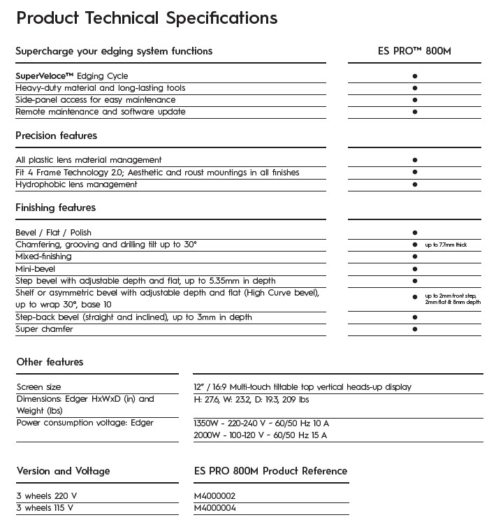 - ES PRO 800M cuts all lenses¹, including slippery hydrophobic lenses, with fine-tuned precision, thanks to its hybrid milling and grinding technology².